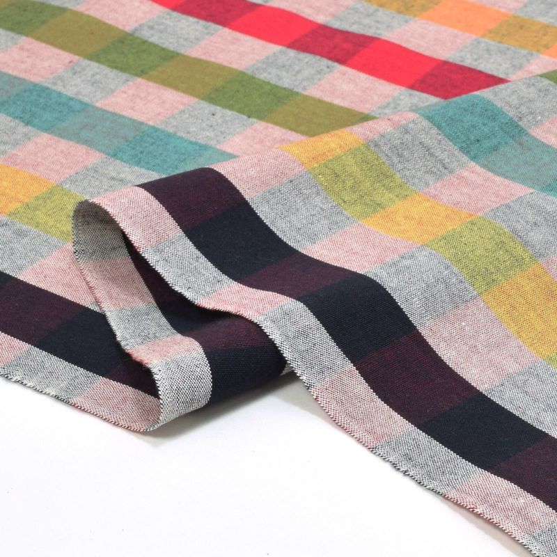 5. 伊勢木綿 洗える着物 反物 レディース「重ね格子 杢×カラフルチェック」未仕立て 木綿きもの 日本製 三重県 伝統工芸品 単衣 綿 カジュアル 小紋 レディース【メール便不可】