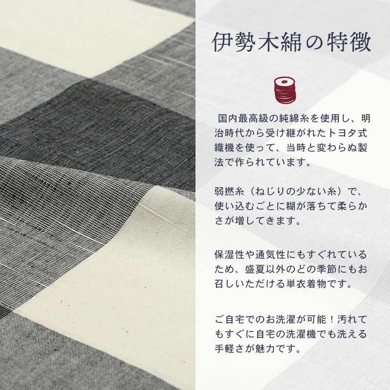 6. 伊勢木綿 洗える着物 反物 レディース「箱格子 グレー」未仕立て 木綿きもの 日本製 三重県 伝統工芸品 単衣 綿 カジュアル 小紋 レディース【メール便不可】