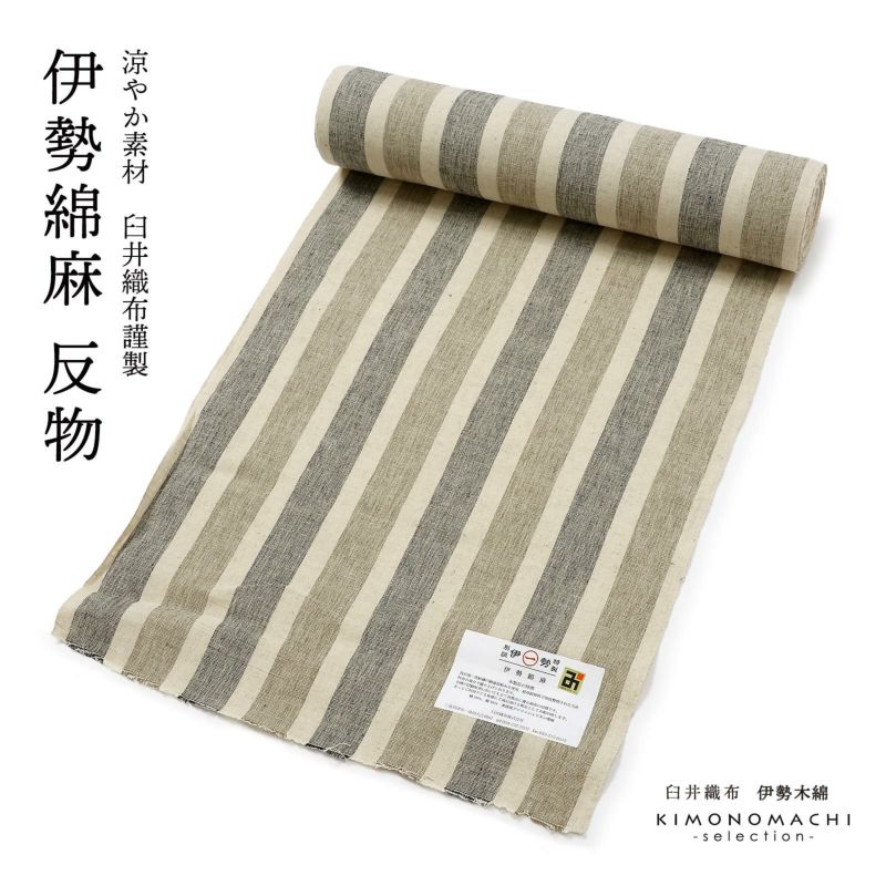 伊勢綿麻 洗える着物 反物 レディース「縦縞 杢グレージュ」未仕立て 綿麻きもの 日本製 三重県 伝統工芸品 単衣 綿麻 カジュアル 小紋 レディース【メール便不可】