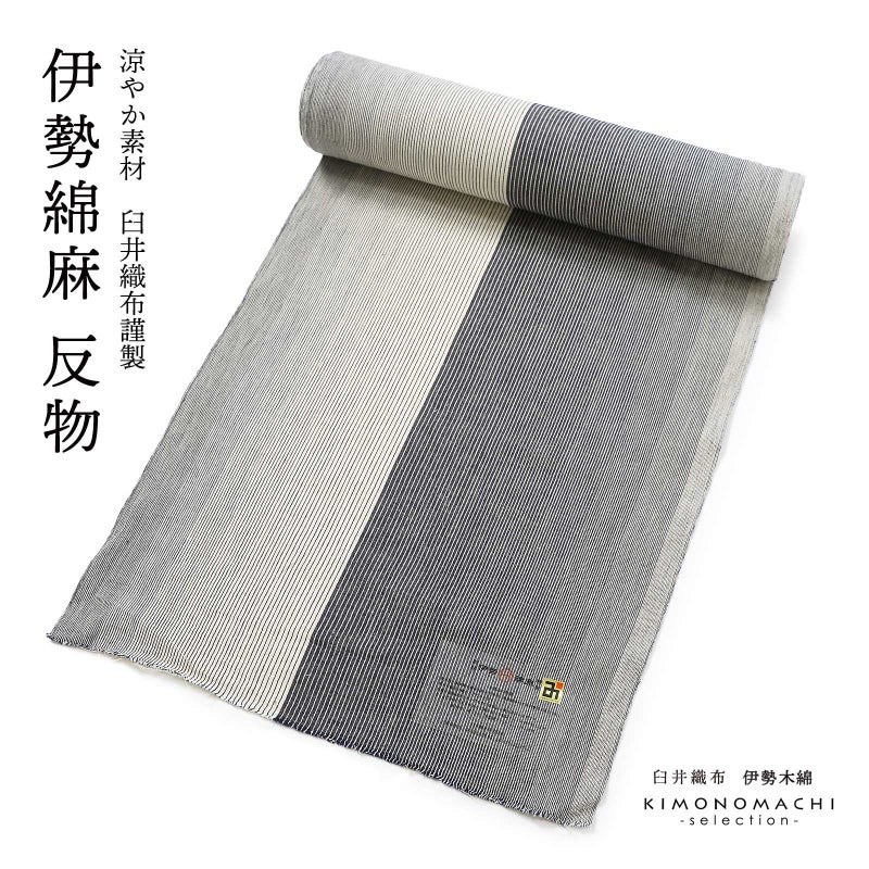 やわらかく、どこかぬくもりが感じられる「伊勢木綿」の未仕立て着物 反物 伊勢綿麻 洗える着物 反物 レディース「貝割れ滝縞 グレー×アイボリー」未仕立て 綿麻きもの 日本製 三重県 伝統工芸品 単衣 綿麻 カジュアル 小紋 レディース【メール便不可】