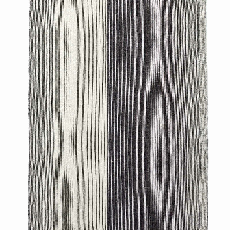 【色柄】地の2分の1強は浅い黒に生成り色の細かな滝縞、残りは生成り色の地に浅い黒の細かな滝縞。大きな割付けと太さの異なる縞のグラデーションが粋な印象に。