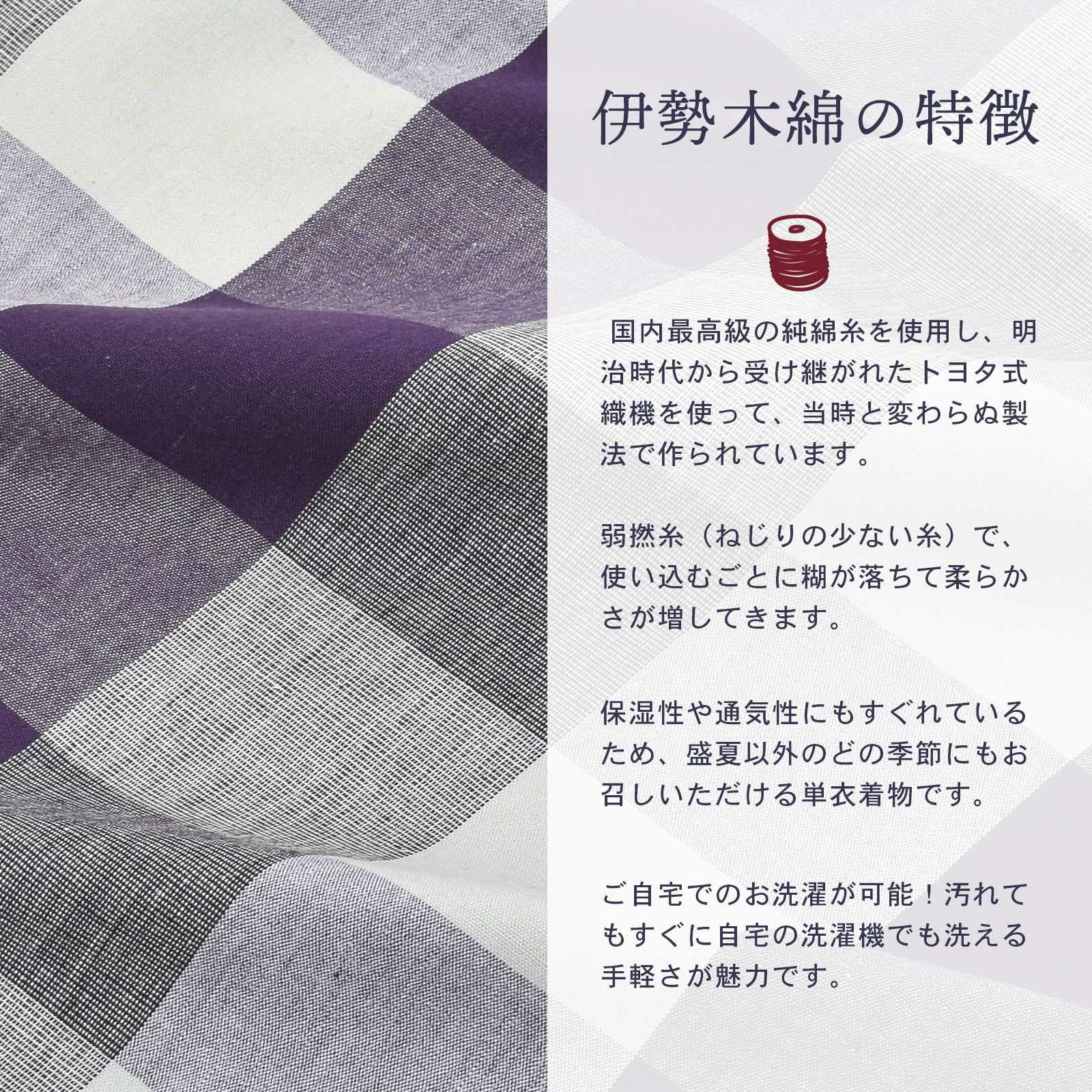 他の画像を見る 送料無料 やわらかく、どこかぬくもりが感じられる「伊勢木綿」の未仕立て着物 反物 伊勢木綿 洗える着物 反物 「六升格子 紫×灰色」 未仕立て 木綿きもの 日本製 三重県 伝統工芸品 単衣 綿 カジュアル チェック 小紋 レディース キモノ kimono 【メール便不可】 きもの町価格 ¥ 39,600 税込 在庫切れ 詳細を見る お気に入りに登録する