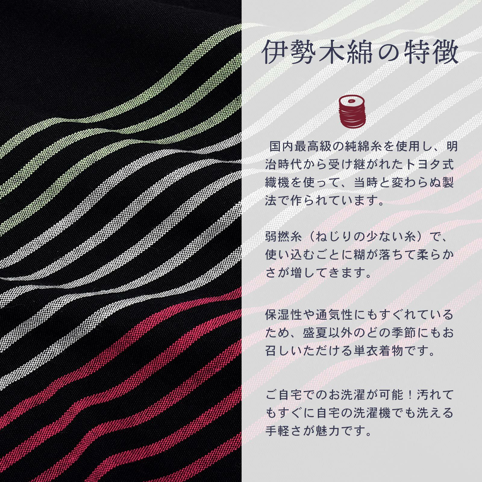 他の画像を見る 送料無料 やわらかく、どこかぬくもりが感じられる「伊勢木綿」の未仕立て着物 反物 伊勢木綿 洗える着物 反物 「縞 黒地、菖蒲」 未仕立て 木綿きもの 日本製 三重県 伝統工芸品 単衣 綿 カジュアル 小紋 レディース キモノ kimono 【メール便不可】 きもの町価格 ¥ 39,600 税込 在庫切れ 詳細を見る お気に入りに登録する