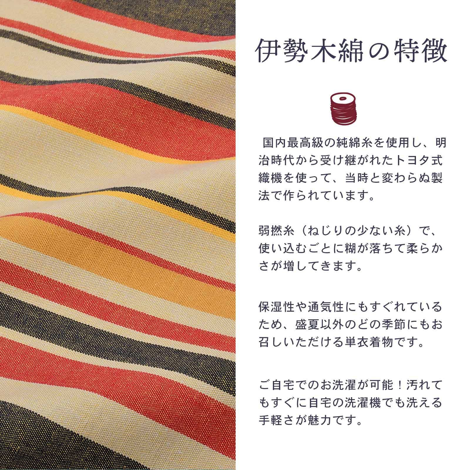 他の画像を見る 送料無料 やわらかく、どこかぬくもりが感じられる「伊勢木綿」の未仕立て着物 反物 伊勢木綿 洗える着物 反物 「やたら縞 亜麻色地、朱×茶(地層)」 未仕立て 木綿きもの 日本製 三重県 伝統工芸品 単衣 綿 カジュアル 小紋 レディース キモノ kimono 【メール便不可】 きもの町価格 ¥ 39,600 税込 在庫切れ 詳細を見る お気に入りに登録する
