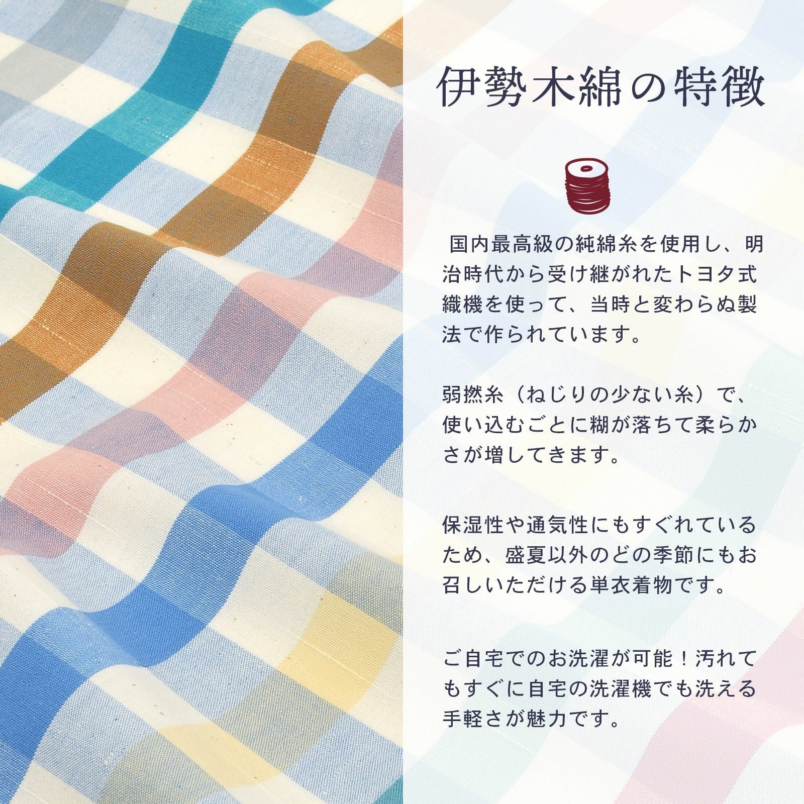 他の画像を見る 送料無料 やわらかく、どこかぬくもりが感じられる「伊勢木綿」の未仕立て着物 反物 伊勢木綿 洗える着物 反物 「三升格子 紺地、白×薄橙色(月明り)」 未仕立て 木綿きもの 日本製 三重県 伝統工芸品 単衣 綿 カジュアル チェック 小紋 レディース キモノ kimono 【メール便不可】 きもの町価格 ¥ 39,600 税込 在庫切れ 詳細を見る お気に入りに登録する