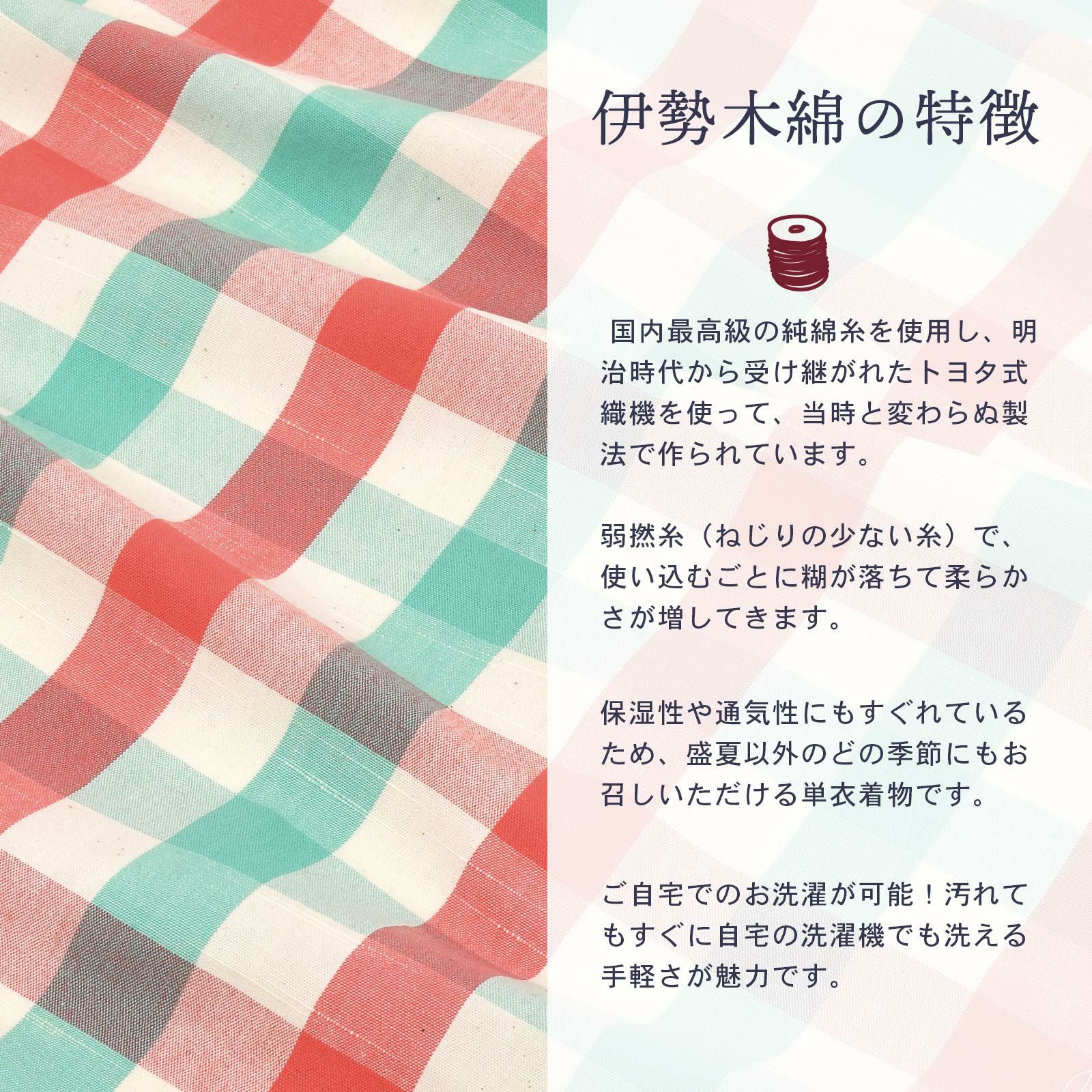 他の画像を見る 送料無料 やわらかく、どこかぬくもりが感じられる「伊勢木綿」の未仕立て着物 反物 伊勢木綿 洗える着物 反物 「重ね格子 白地、赤×ミント(初夏)」 未仕立て 木綿きもの 日本製 三重県 伝統工芸品 単衣 綿 カジュアル チェック 小紋 レディース キモノ kimono 【メール便不可】 きもの町価格 ¥ 39,600 税込 在庫切れ 詳細を見る お気に入りに登録する