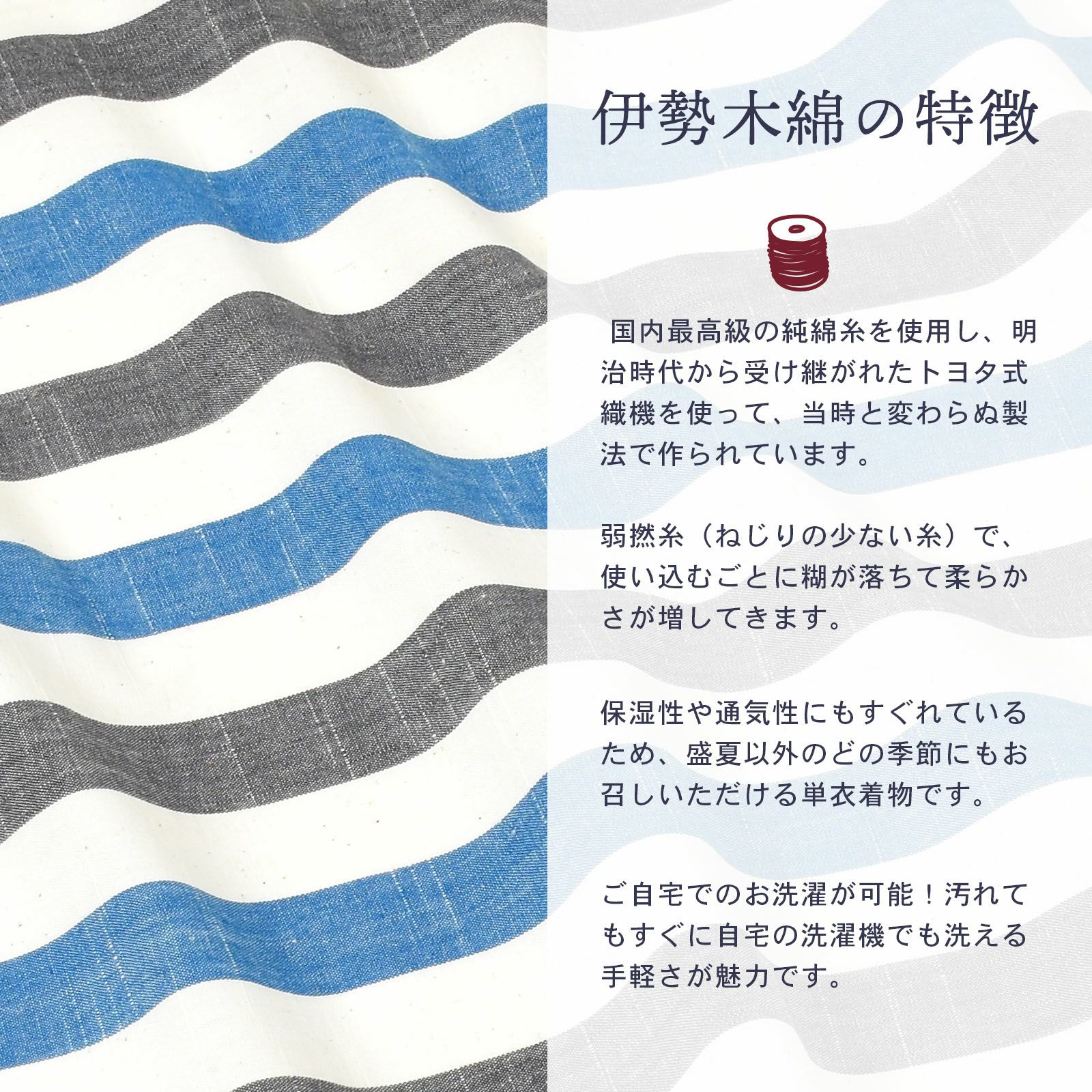他の画像を見る 送料無料 やわらかく、どこかぬくもりが感じられる「伊勢木綿」の未仕立て着物 反物 伊勢木綿 洗える着物 反物 「縦縞 白地、青×灰色(漣)」 未仕立て 木綿きもの 日本製 三重県 伝統工芸品 単衣 綿 カジュアル ストライプ 小紋 レディース キモノ kimono 【メール便不可】 きもの町価格 ¥ 39,600 税込 在庫切れ 詳細を見る お気に入りに登録する
