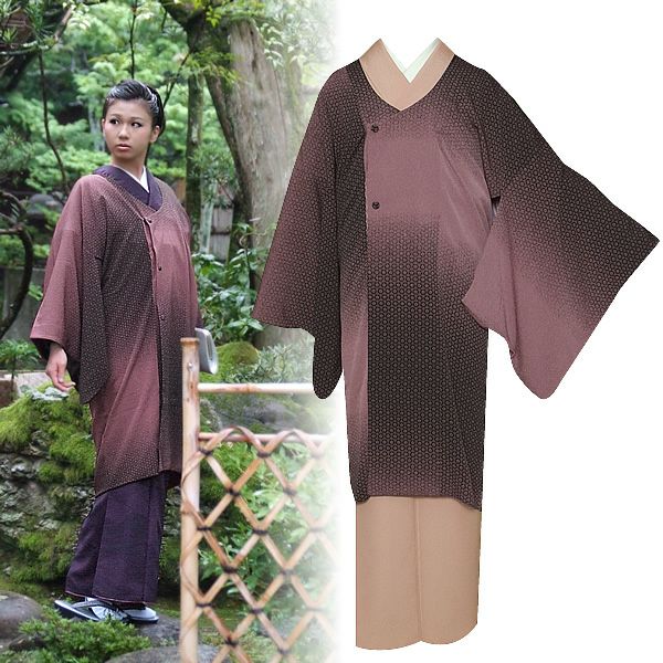 3. 【Prices down2】丹後ちりめん 和装コート 千代田衿「紅藤色×黒色ぼかし 亀甲小花」(6932)ロングコート【メール便不可】ss2512hor45