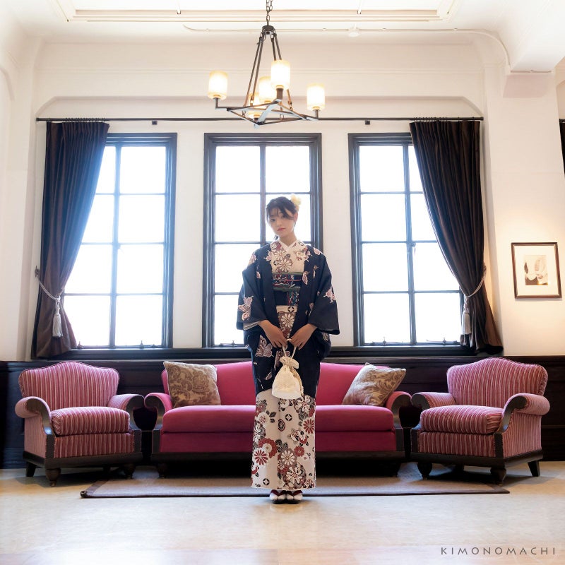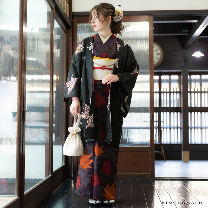 長めの丈なので、シルエットがすっきりと見えます。小紋や紬などのカジュアルな普段のお着物に合わせて、お洒落を楽しんでいただけます。少し肌寒い春先、秋、冬口などのサッと羽織って防寒対策に良いですね。羽織は洋服でいうところのカーディガンやジャケットのようなもので、コートと違い、室内でも着用していただけます。