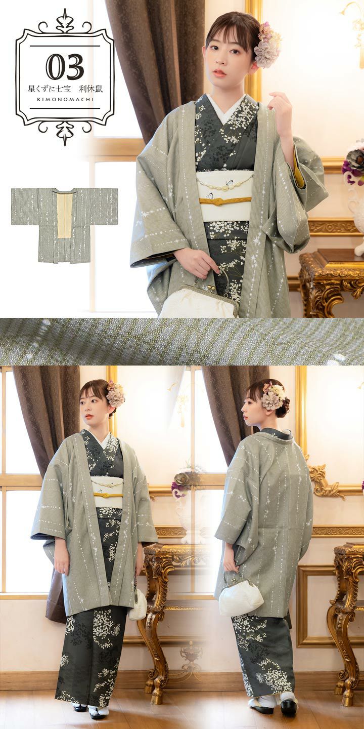 少し肌寒い春先、秋、冬口などのサッと羽織って防寒対策に良いですね。羽織は洋服でいうところのカーディガンやジャケットのようなもので、コートと違い、室内でも着用していただけます。