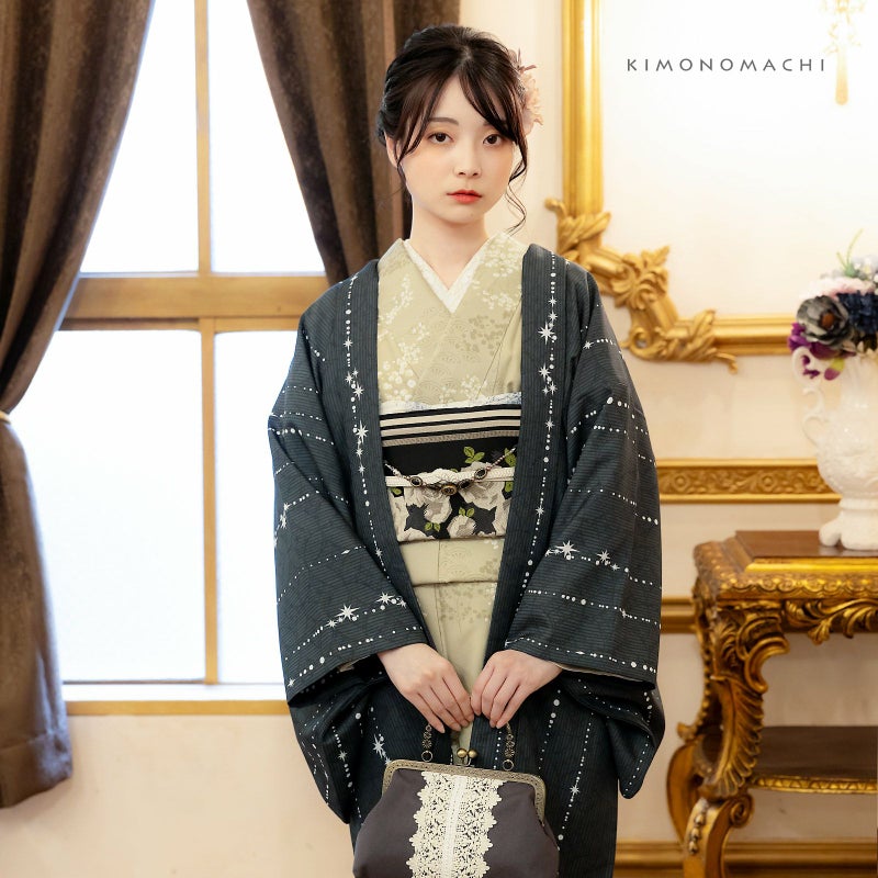 長めの丈なので、シルエットがすっきりと見えます。小紋や紬などのカジュアルな普段のお着物に合わせて、お洒落を楽しんでいただけます。