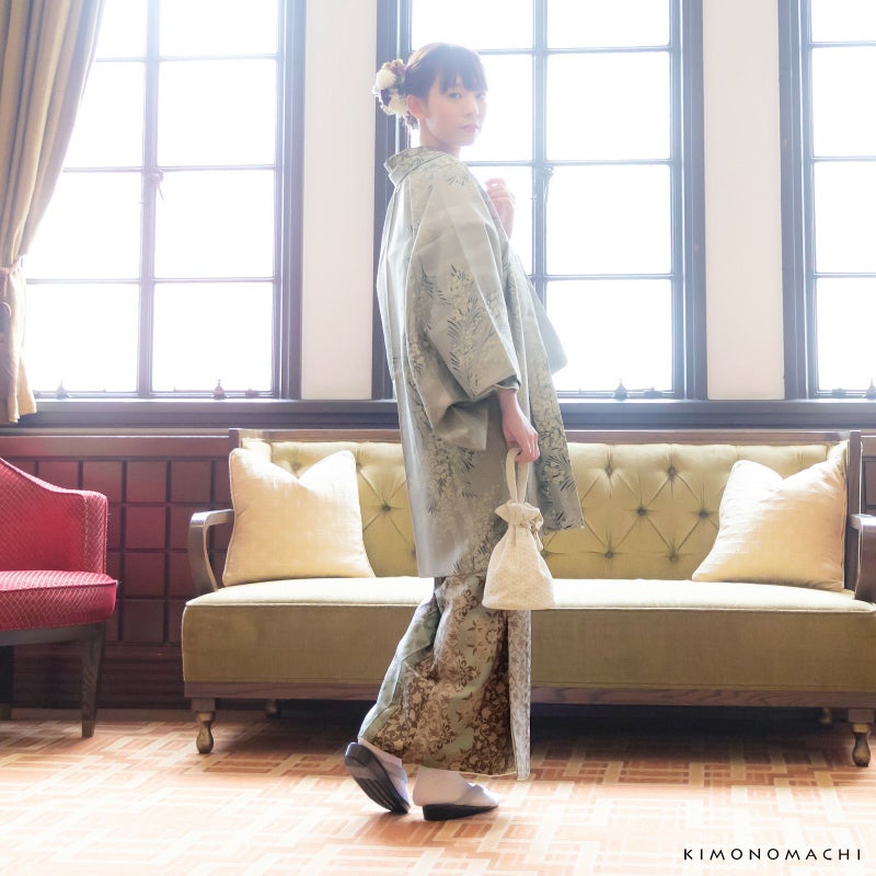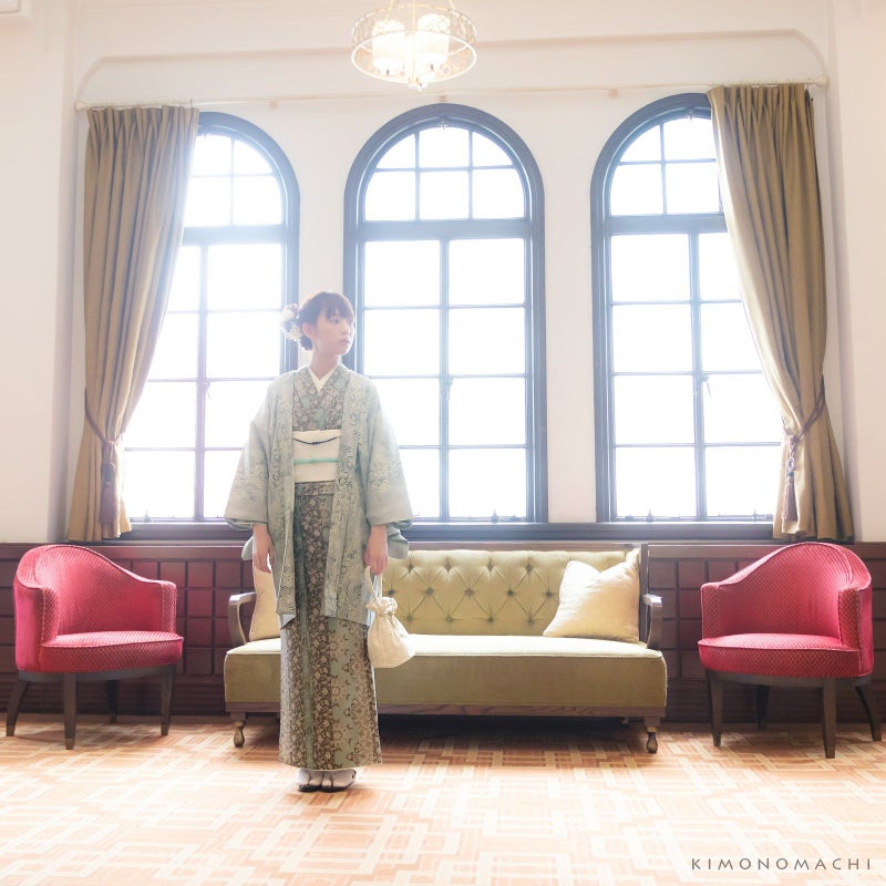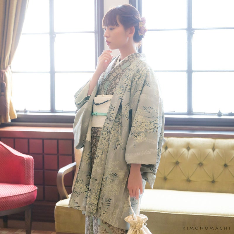 長めの丈なので、シルエットがすっきりと見えます。小紋や紬などのカジュアルな普段のお着物に合わせて、お洒落を楽しんでいただけます。少し肌寒い春先、秋、冬口などのサッと羽織って防寒対策に良いですね。羽織は洋服でいうところのカーディガンやジャケットのようなもので、コートと違い、室内でも着用していただけます。