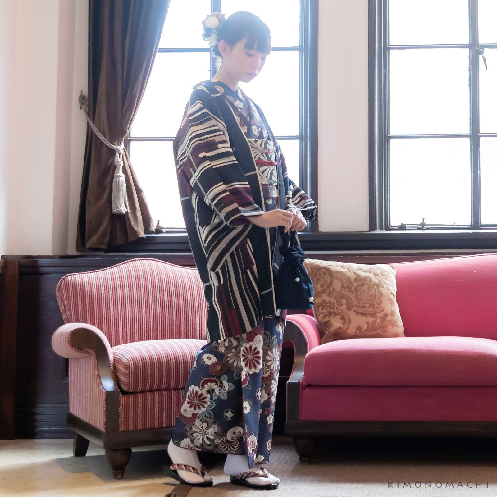 他の画像を見る 送料無料 KIMONOMACHI オリジナル 洗える羽織 レトロモダン 古典柄 アンティーク着物風 羽織 単品 KIMONOMACHI オリジナル 「ストライプブーケ プラム」 ポリエステル 洗える羽織 きもの福袋から飛び出したオリジナル羽織 京都きもの町オリジナル カジュアル着物 【メール便不可】ss2509kct15 通常販売価格 ¥ 12,100 のところ きもの町価格 ¥ 10,285 税込 カートに入れる お気に入りに登録する
