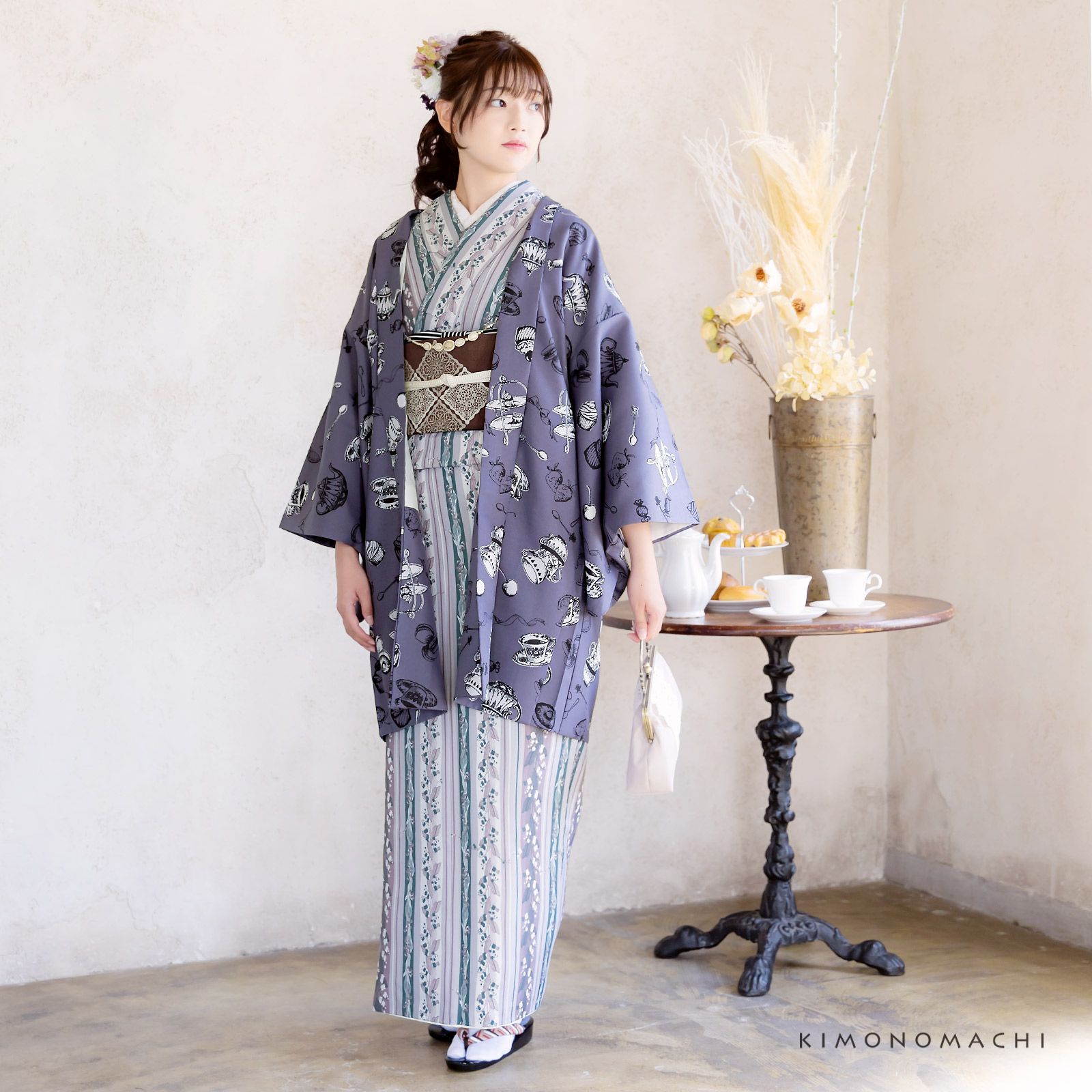 他の画像を見る 送料無料 KIMONOMACHI オリジナル 洗える羽織 レトロモダン 古典柄 アンティーク着物風 羽織 単品 KIMONOMACHI オリジナル「アフタヌーンティー ウィスタリアグレー」ポリエステル 洗える羽織 きもの福袋から飛び出したオリジナル羽織 京都きもの町オリジナル カジュアル着物【メール便不可】ss2512hor10 きもの町価格 ¥ 12,100 税込 カートに入れる お気に入りに登録する