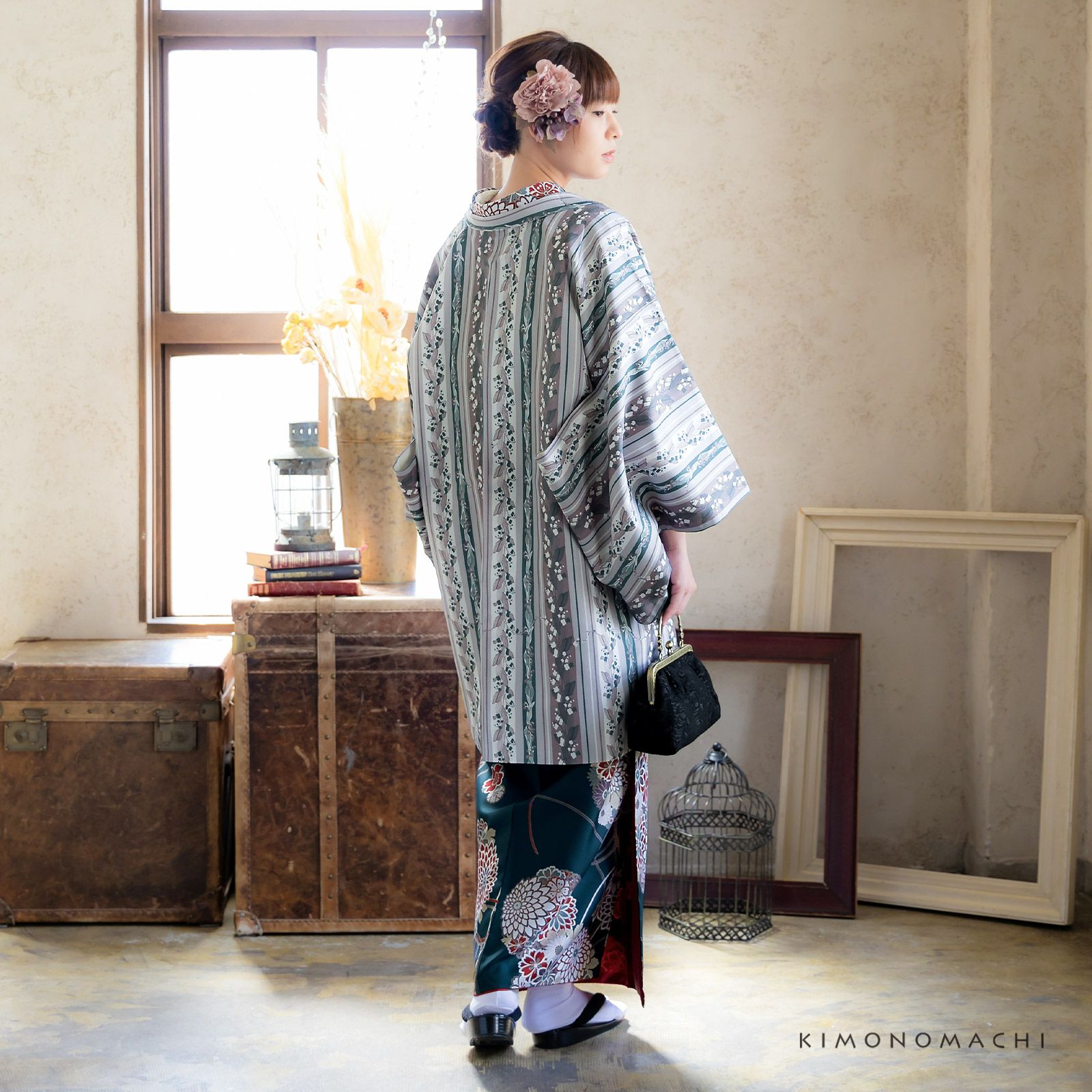 他の画像を見る 送料無料 KIMONOMACHI オリジナル 洗える羽織 レトロモダン 古典柄 アンティーク着物風 羽織 単品 KIMONOMACHI オリジナル 「ストライプブーケ グリーン」 ポリエステル 洗える羽織 きもの福袋から飛び出したオリジナル羽織 京都きもの町オリジナル カジュアル着物 【メール便不可】ss2509kct15 通常販売価格 ¥ 12,100 のところ きもの町価格 ¥ 10,285 税込 カートに入れる お気に入りに登録する