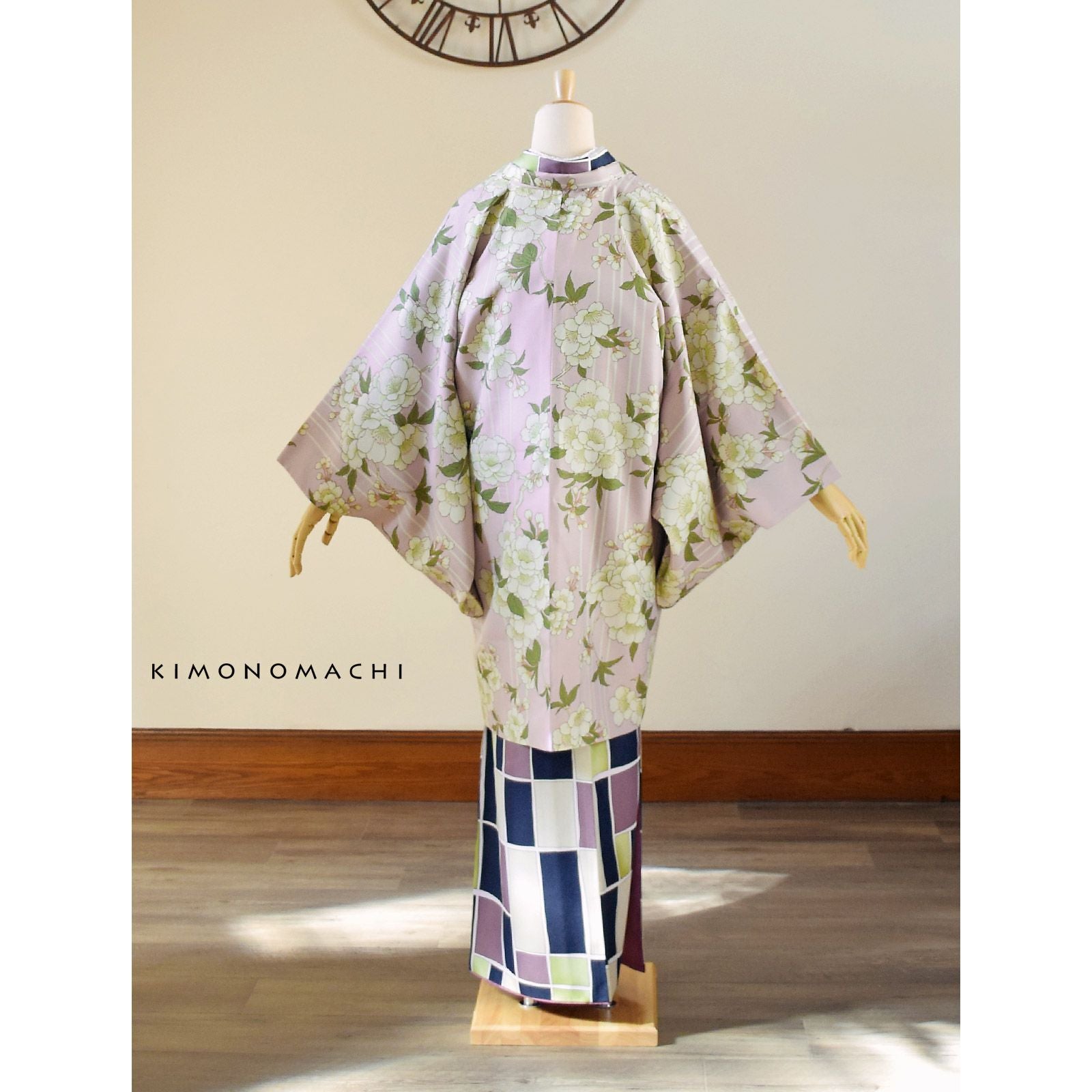他の画像を見る 送料無料 KIMONOMACHI オリジナル 洗える羽織 レトロモダン 古典柄 アンティーク着物風 羽織 単品 KIMONOMACHI オリジナル「縞すずらん パープル×グリーン」ポリエステル 洗える羽織 きもの福袋から飛び出したオリジナル羽織 京都きもの町オリジナル カジュアル着物【メール便不可】ss2512hor10 きもの町価格 ¥ 12,100 税込 カートに入れる お気に入りに登録する