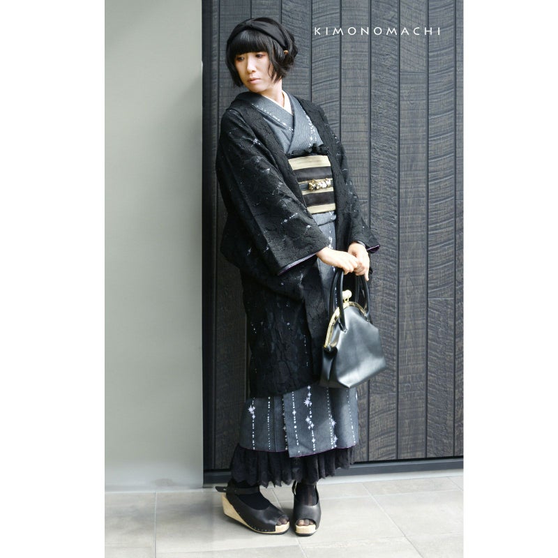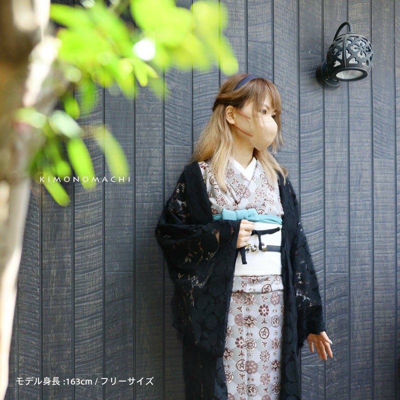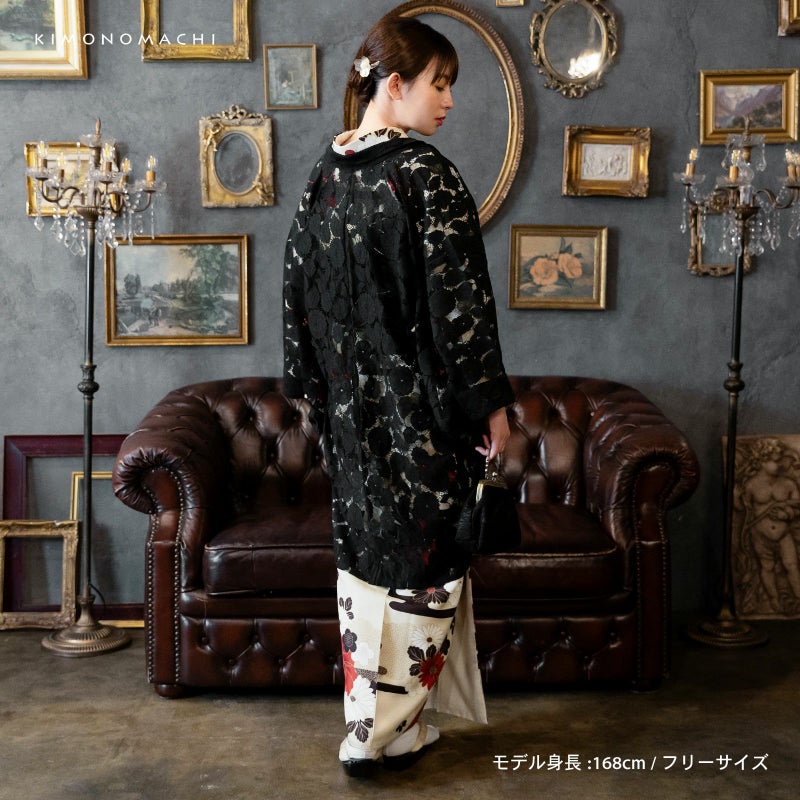 3. 羽織 単品 レース羽織「ブラック」KIMONOMACHIオリジナル お仕立て上がり レース羽織り 着物 小紋 浴衣 女性用 レディース カジュアル 和装コート 薄羽織【メール便不可】