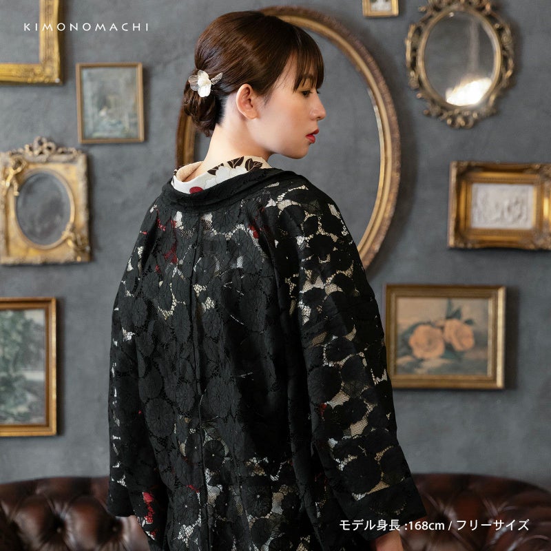 4. 羽織 単品 レース羽織「ブラック」KIMONOMACHIオリジナル お仕立て上がり レース羽織り 着物 小紋 浴衣 女性用 レディース カジュアル 和装コート 薄羽織【メール便不可】