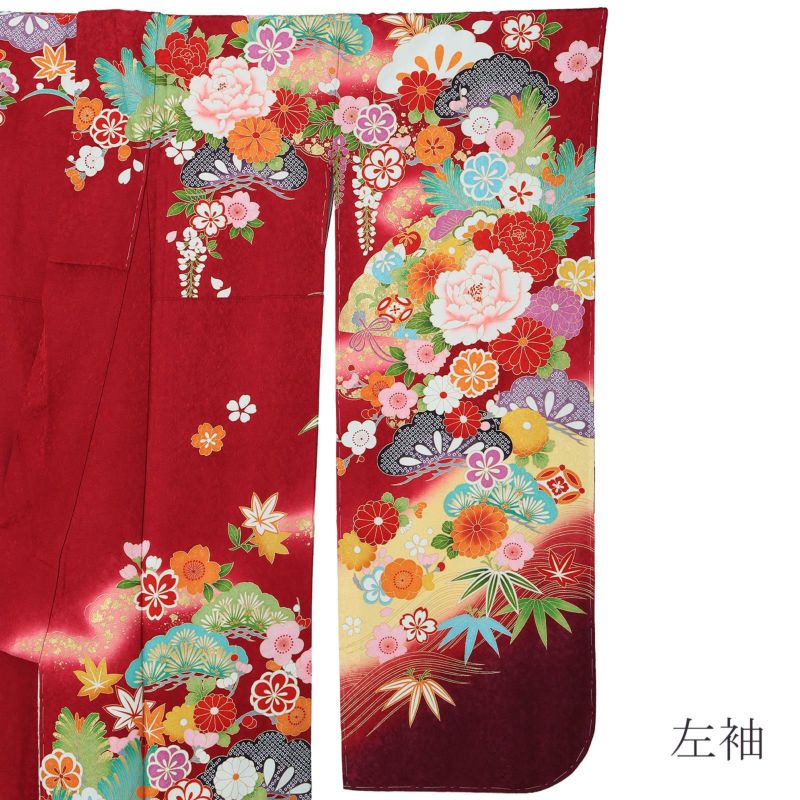 5. 【新古品】お仕立て上がり 振袖単品 「深緋 扇に松、牡丹」 トールサイズ IKKO 振袖 振り袖 ブランド 成人式 結婚式 結納 パーティー 【メール便不可】