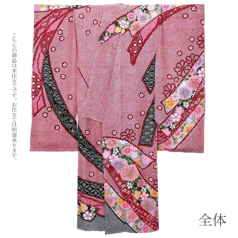 5. (卒業式応援Point10倍 3/5迄)未仕立て 振袖 単品 「赤、疋田 熨斗に花紋」 仮絵羽 振り袖 正絹 着物 レディース 成人式 結婚式 結納 パーティー 晴れ着 【メール便不可】