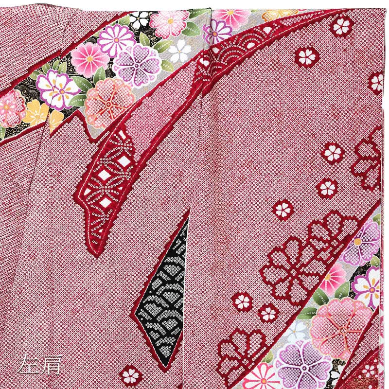 未仕立て 振袖 単品 「赤、疋田 熨斗に花紋」 仮絵羽 振り袖 正絹 着物 レディース 成人式 結婚式 結納 パーティー 晴れ着 【メール便不可】
