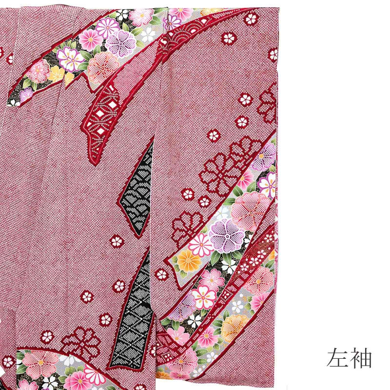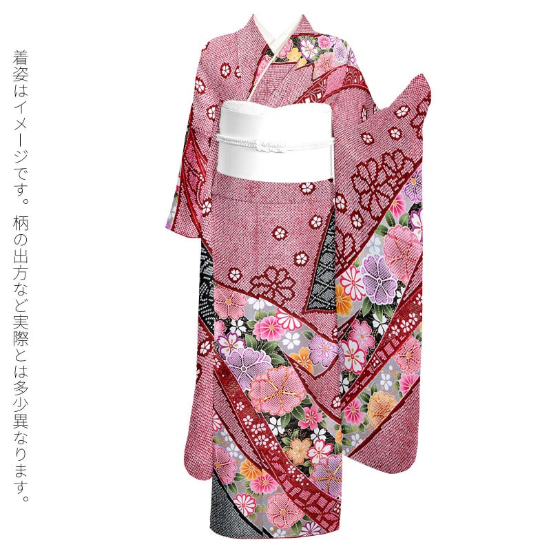 4. (卒業式応援Point10倍 3/5迄)未仕立て 振袖 単品 「赤、疋田 熨斗に花紋」 仮絵羽 振り袖 正絹 着物 レディース 成人式 結婚式 結納 パーティー 晴れ着 【メール便不可】