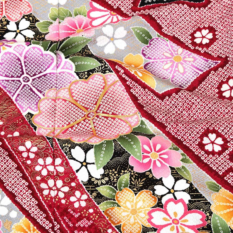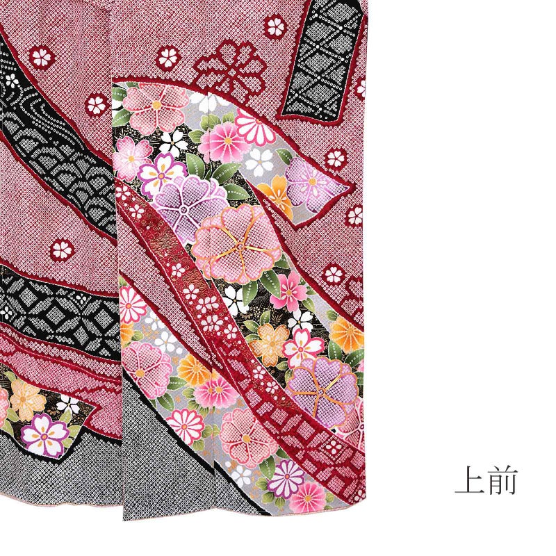 3. (卒業式応援Point10倍 3/5迄)未仕立て 振袖 単品 「赤、疋田 熨斗に花紋」 仮絵羽 振り袖 正絹 着物 レディース 成人式 結婚式 結納 パーティー 晴れ着 【メール便不可】