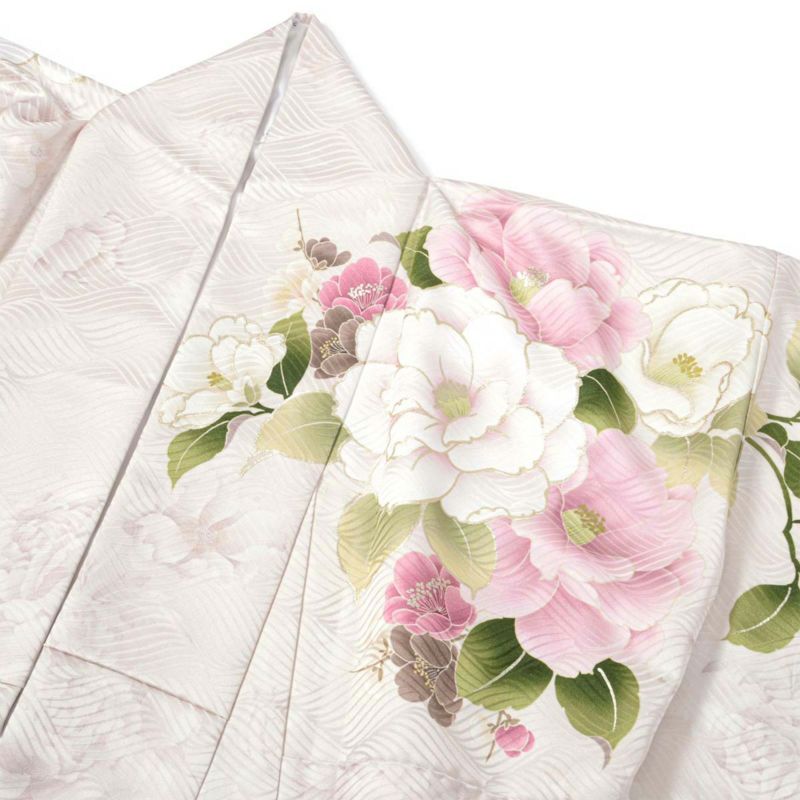 【商品内容】振袖(仮絵羽・未仕立て)、袋帯(未仕立て)、長襦袢(未仕立て)、ショール、刺繍半衿、肌着、帯枕、帯前板、帯後板、衿芯、伊達締め2本、コーリンベルト、三重仮紐、腰紐6本、足袋、着物ハンガー、振袖お仕立て、帯お仕立て、襦袢お仕立て、半衿縫い付け、胴裏正絹、長襦袢正絹の計22点セット