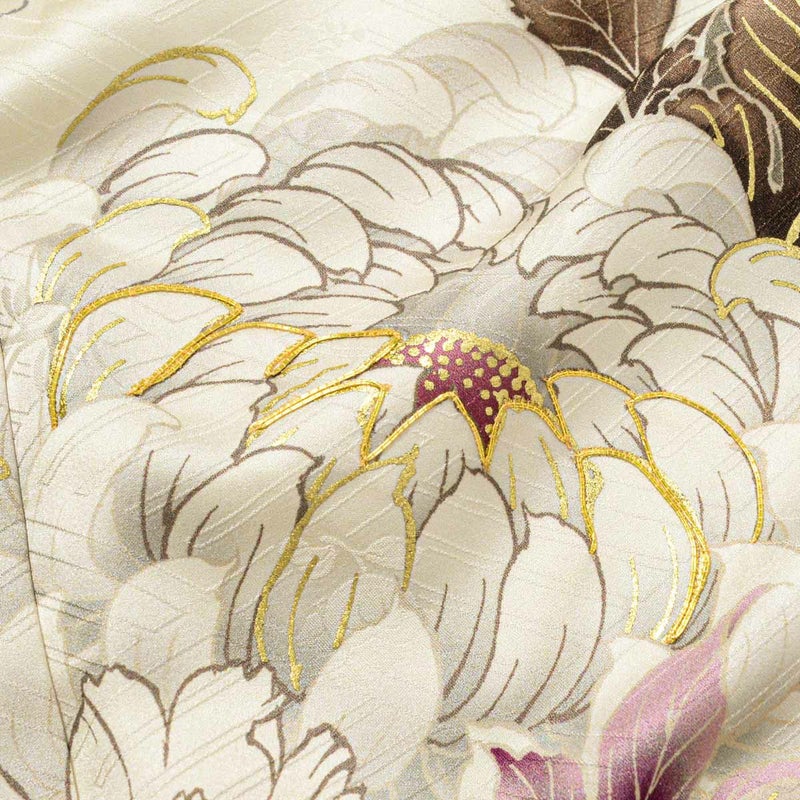 5. (卒業式応援Point10倍 3/19迄)未仕立て 振袖 22点セット「オフホワイト×茶 菊牡丹に笹」仮絵羽 振り袖 正絹 着物 ブランド振袖 成人式 結婚式 結納 パーティー 晴れ着 【メール便不可】