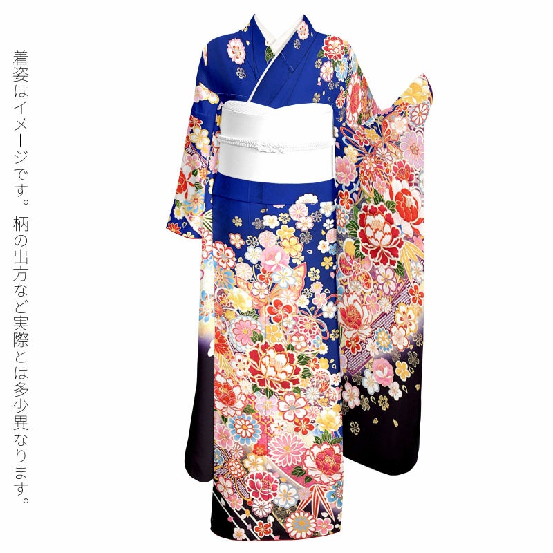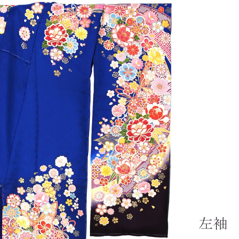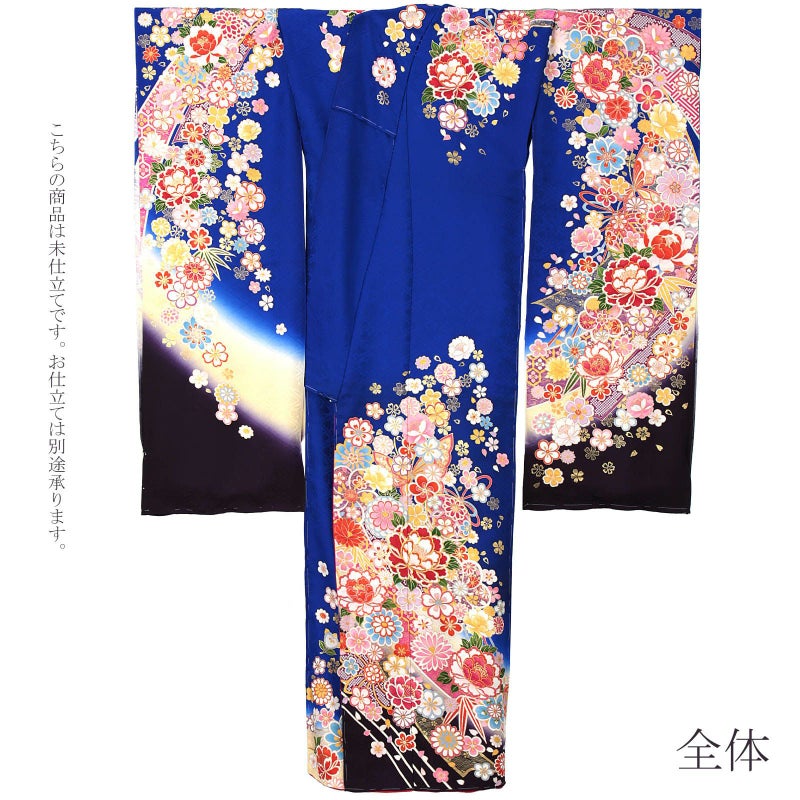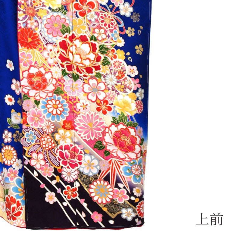 5. (卒業式応援Point10倍 3/19迄)未仕立て 振袖 単品 「瑠璃紺色 鈴に牡丹」 仮絵羽 振り袖 正絹 着物 レディース 成人式 結婚式 結納 パーティー 晴れ着 【メール便不可】