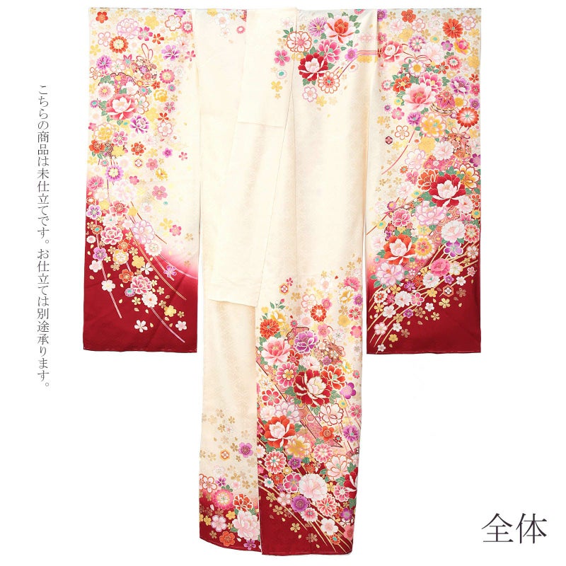 成人式や結婚式などに 華やかな未仕立て振袖単品 (卒業式応援Point10倍 3/19迄)未仕立て 振袖 単品 「生成り色 牡丹に雪輪、桜」 仮絵羽 振り袖 正絹 着物 レディース 成人式 結婚式 結納 パーティー 晴れ着 【メール便不可】
