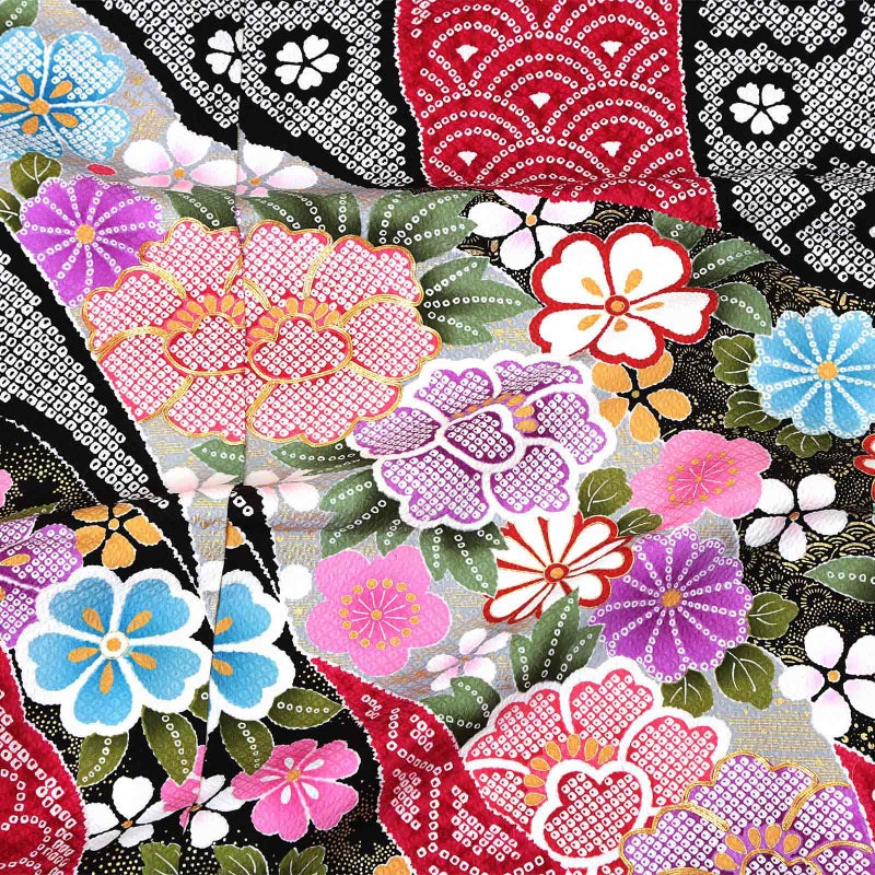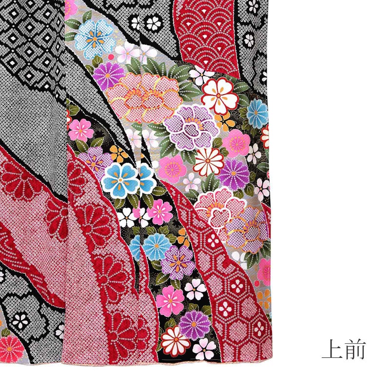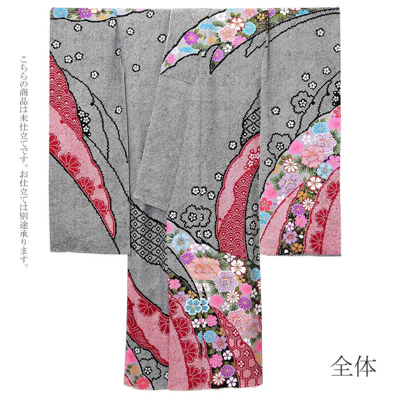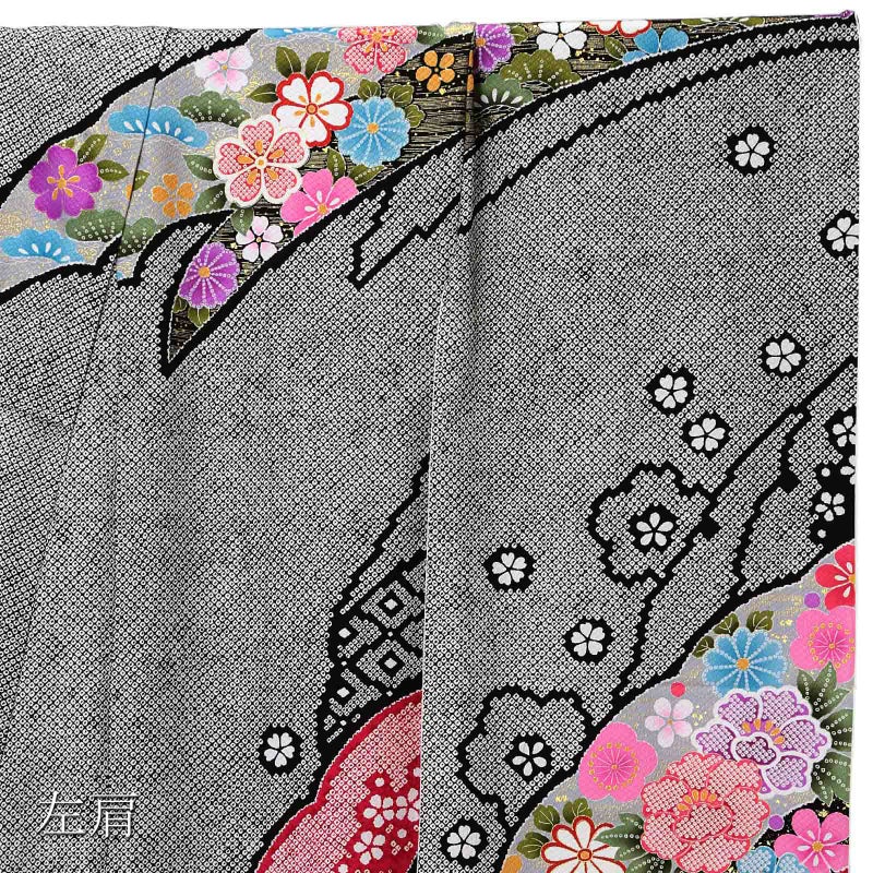 5. (卒業式応援Point10倍 3/19迄)未仕立て 振袖 単品 「黒地 疋田、雪芝取りに牡丹」 仮絵羽 振り袖 正絹 着物 レディース 成人式 結婚式 結納 パーティー 晴れ着 【メール便不可】