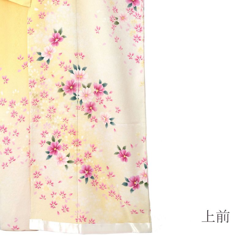 4. (卒業式応援Point10倍 2/5迄)未仕立て 振袖 単品 「クリーム色×黄色 桜」 仮絵羽 振り袖 正絹 着物 レディース 成人式 結婚式 結納 パーティー 晴れ着 【メール便不可】