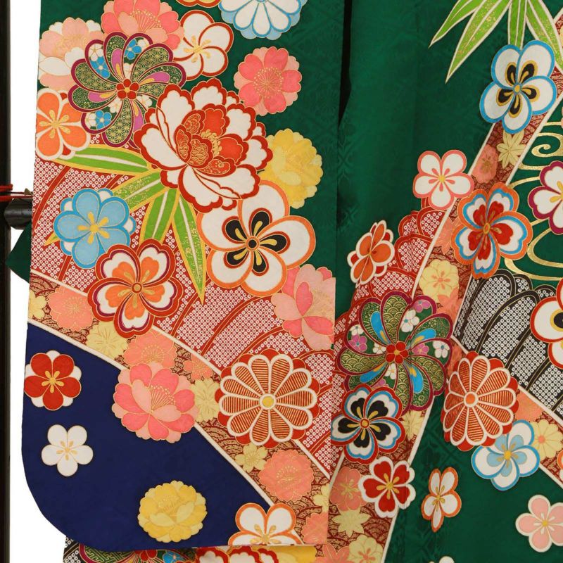 5. (卒業式応援Point10倍1/22迄)未仕立て 振袖 22点セット「緑 流水に菊梅桜牡丹笹」仮絵羽 振り袖 正絹 着物 ブランド振袖 成人式 結婚式 結納 パーティー 晴れ着 【メール便不可】