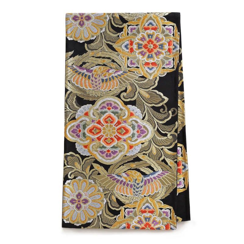 帯:絹78% ポリエステル(金属糸風)・レーヨン(金属糸風芯糸)・指定外繊維(和紙)22% 西陣織証紙番号1810 浅田叡一謹製