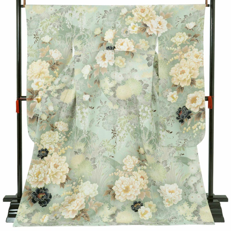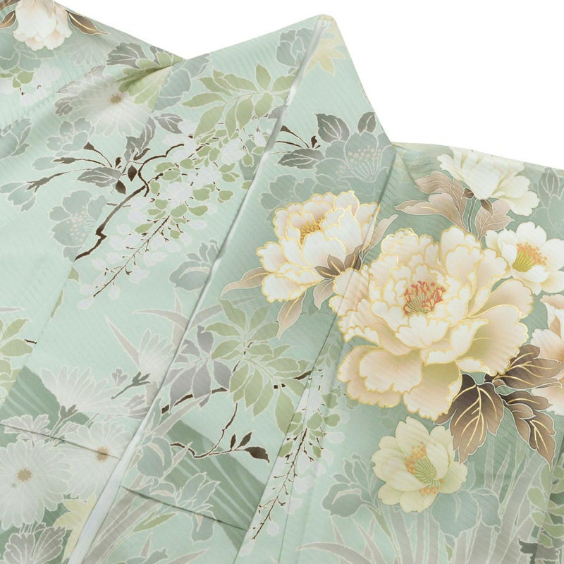 気品漂う色彩が目を惹く振袖セットです。振袖・帯・長襦袢は未仕立てとなります(仕立て代込み)。振袖は、着物の形に仮縫いをした状態の仮絵羽の商品です。