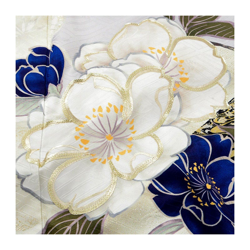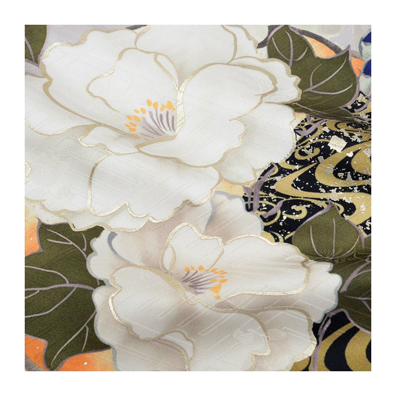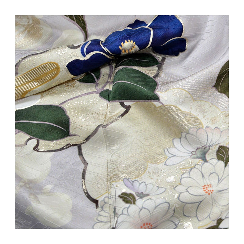 気品漂う色彩が目を惹く振袖セットです。振袖・帯・長襦袢は未仕立てとなります(仕立て代込み)。振袖は、着物の形に仮縫いをした状態の仮絵羽の商品です。