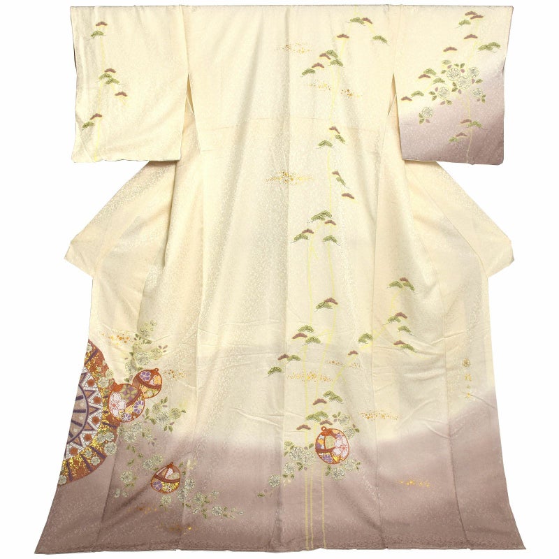 3. 仕立て上がり 訪問着 単品 桂由美 「象牙色 辻が花に松、鈴」 正絹 着物 ブランド訪問着 七五三 入学式 卒業式 卒園式 結婚式 お宮参り 母 ママ 【メール便不可】ss2512fml10