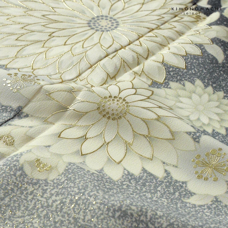 3. 訪問着 お仕立て上がり 単品 JAPAN STYLE「灰色 むじな菊」日本製 礼装 ポリエステル 訪問着 結婚式 パーティー 祝賀会 入学式 卒業式 袷 プレタ 仕立てあがり【メール便不可】