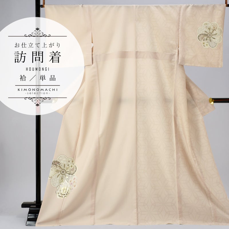 訪問着 お仕立て上がり 単品 JAPAN STYLE「ピンクベージュ ねじ梅」日本製 礼装 ポリエステル 訪問着 結婚式 パーティー 祝賀会 入学式 卒業式 袷 プレタ 仕立てあがり【メール便不可】