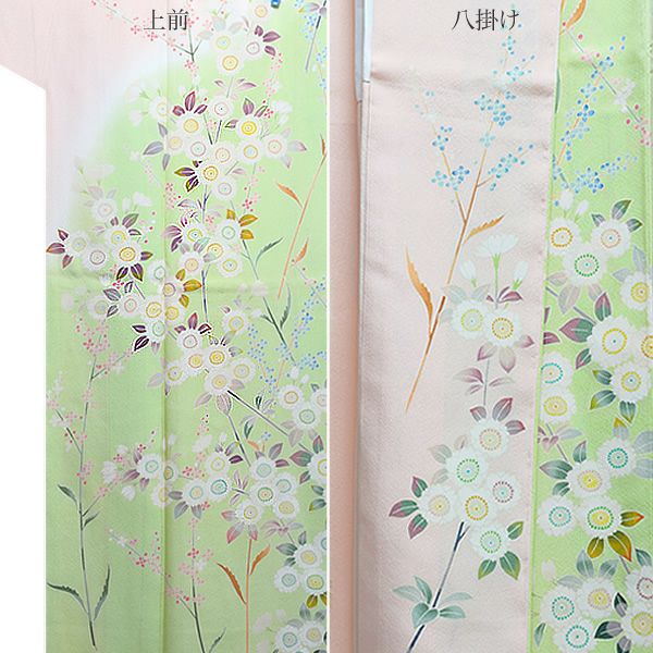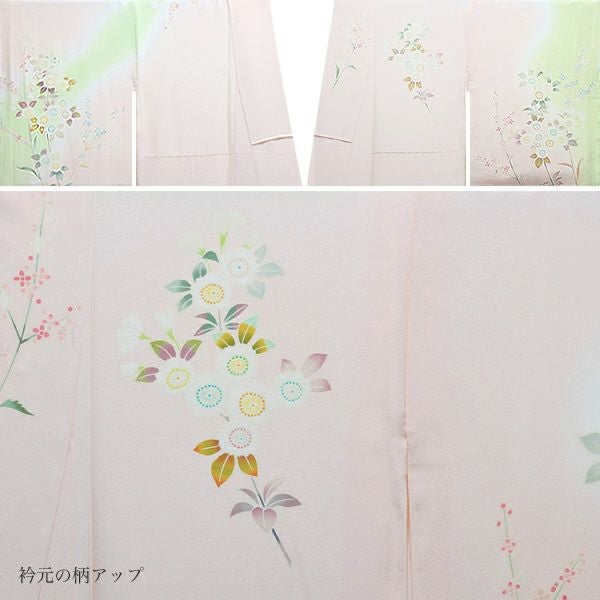 八掛は淡いピンク色。上前の裏側部分には、桜模様。