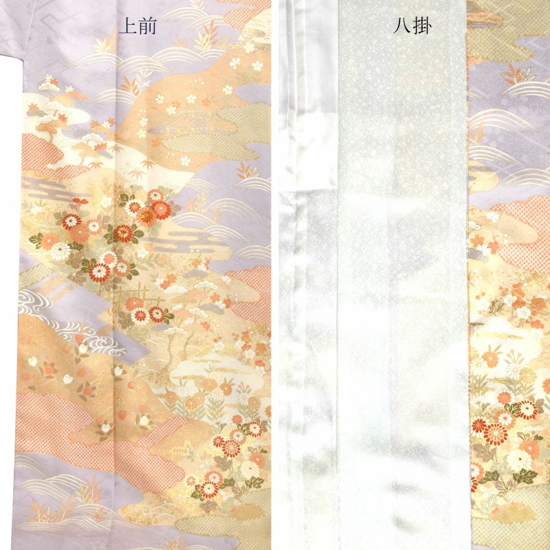 訪問着 お仕立て上がり 単品「薄藤色 霞、籬に菊」正絹着物 礼装 正絹 訪問着 結婚式 パーティー 祝賀会 袷 プレタ 仕立てあがり<T>【メール便不可】