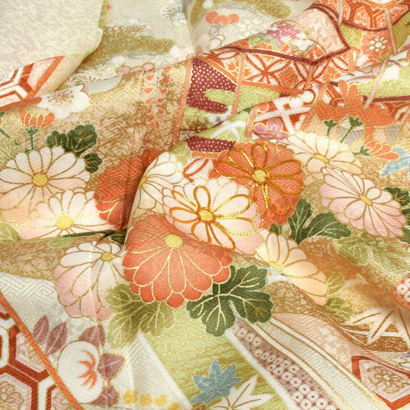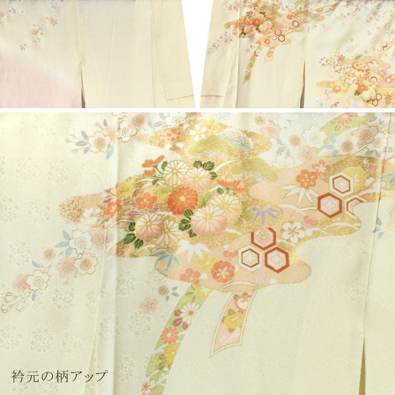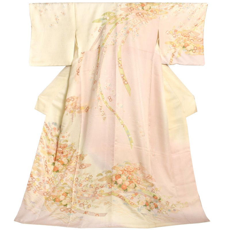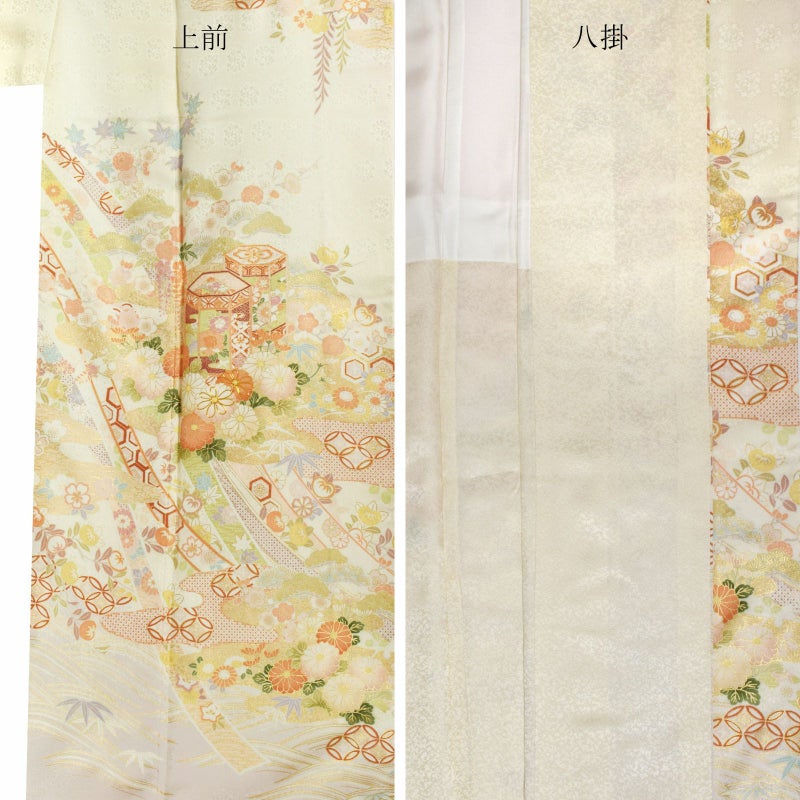 訪問着 お仕立て上がり 単品「灰桜色×象牙色 蔓帯に菊、貝桶」正絹着物 礼装 正絹 訪問着 結婚式 パーティー 祝賀会 袷 プレタ 仕立てあがり<T>【メール便不可】