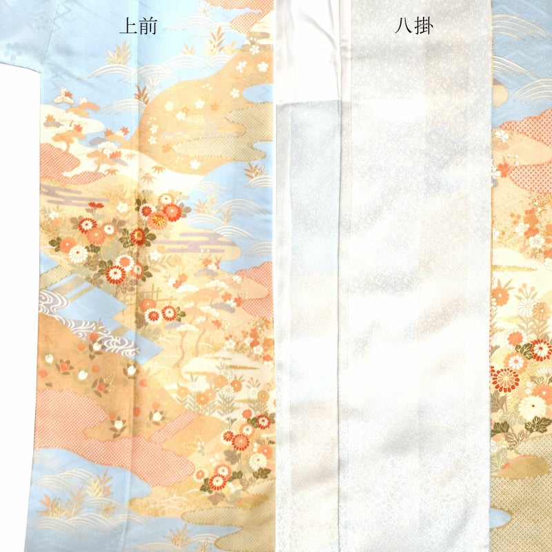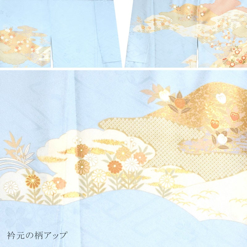 3. 訪問着 お仕立て上がり 単品「水色 霞、籬に菊」正絹着物 礼装 正絹 訪問着 結婚式 パーティー 祝賀会 袷 プレタ 仕立てあがり<T>【メール便不可】ss2603fml10