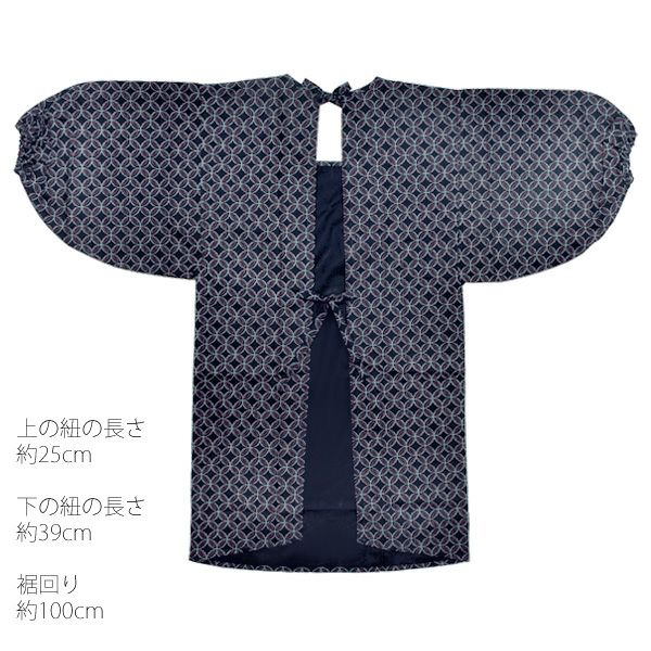 【カラー】濃い紺色地に絣風の七宝繋ぎ模様。