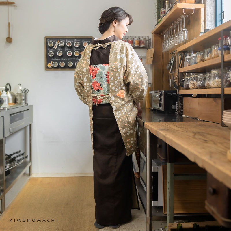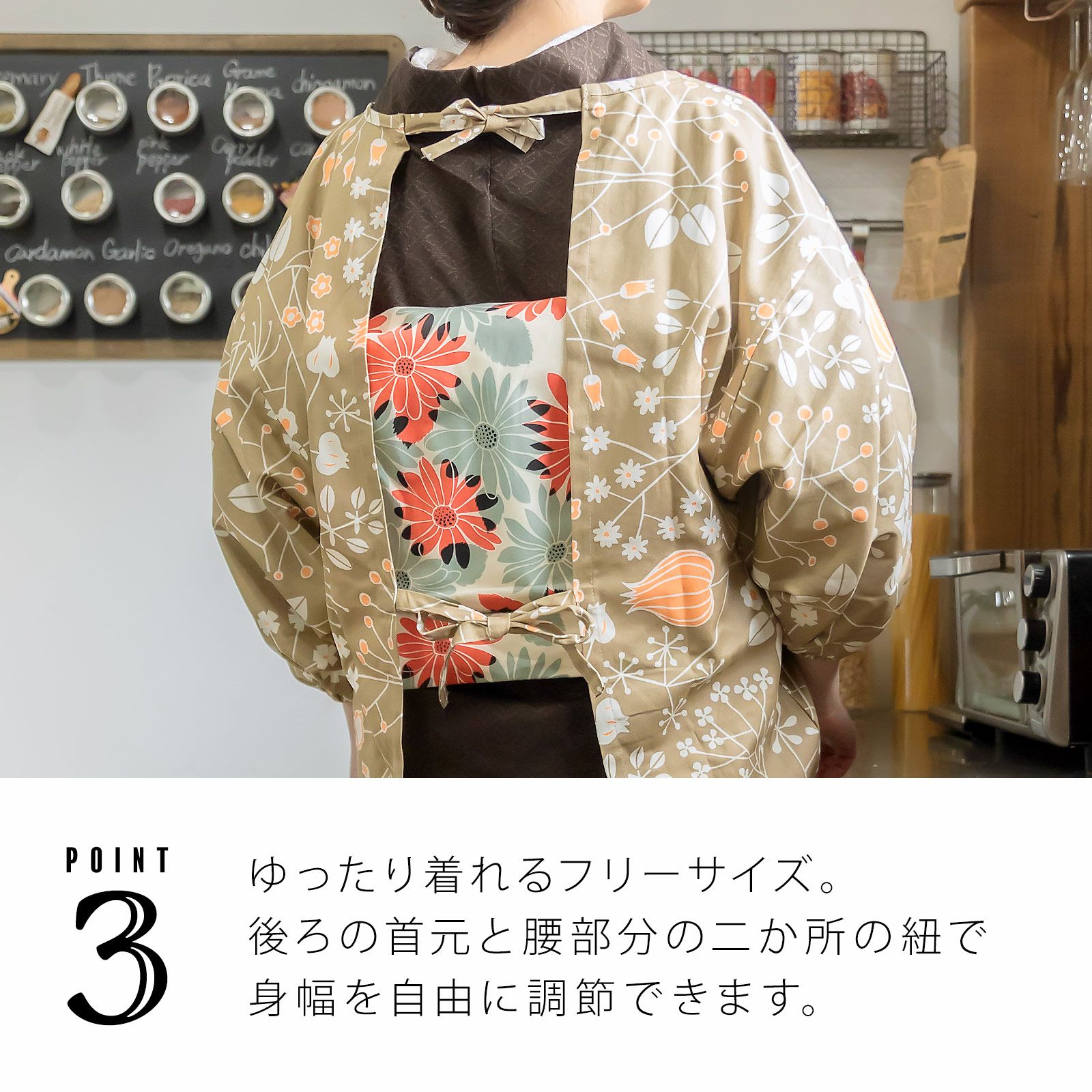 家事や料理など作業時の汚れ防止に、着物だけでなく普段着の洋服にも合わせていただけます。