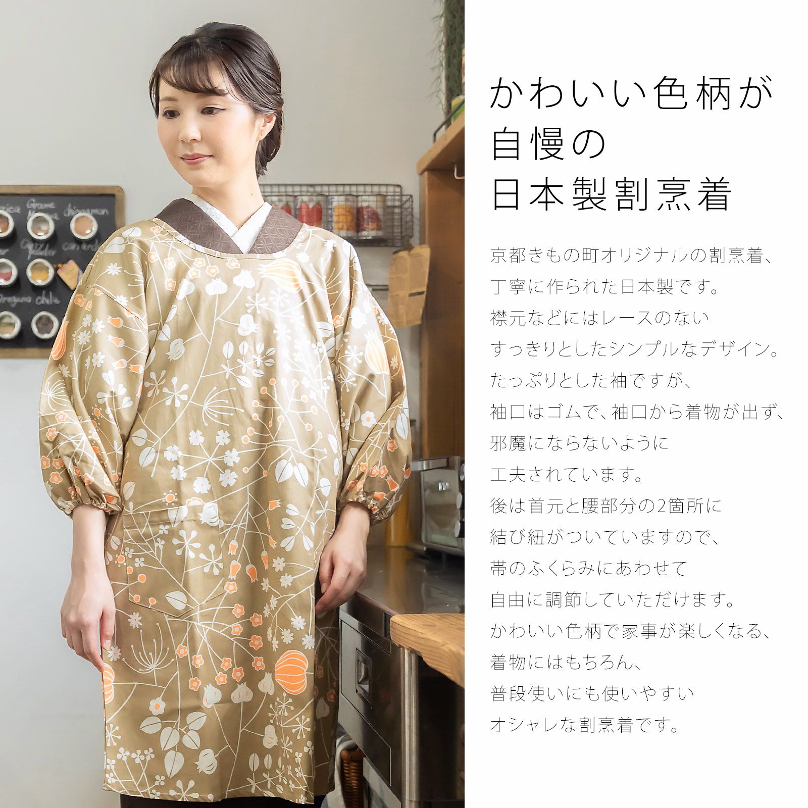 京都きもの町オリジナルの割烹着、丁寧に作られた日本製です。
