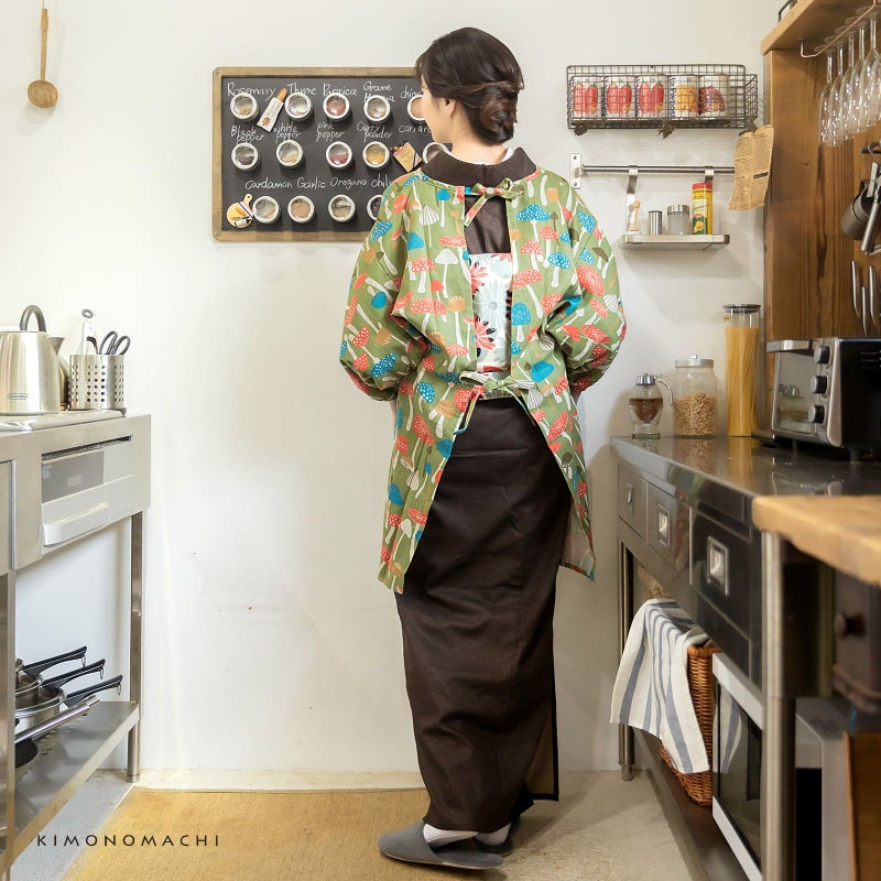 家事や料理など作業時の汚れ防止に、着物だけでなく普段着の洋服にも合わせていただけます。