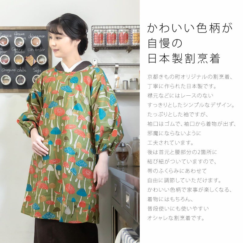 京都きもの町オリジナルの割烹着、丁寧に作られた日本製です。