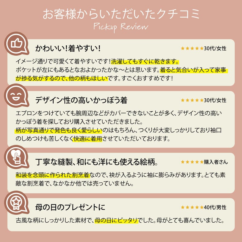 かわいい色柄で家事が楽しくなる、着物にはもちろん、普段使いにも使いやすいオシャレな割烹着です。